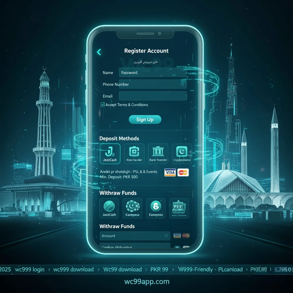 Wc999 supports well-known regional payment options like Easypaisa, JazzCash, and bank transfers, and takes deposits and withdrawals in Pakistani Rupees.